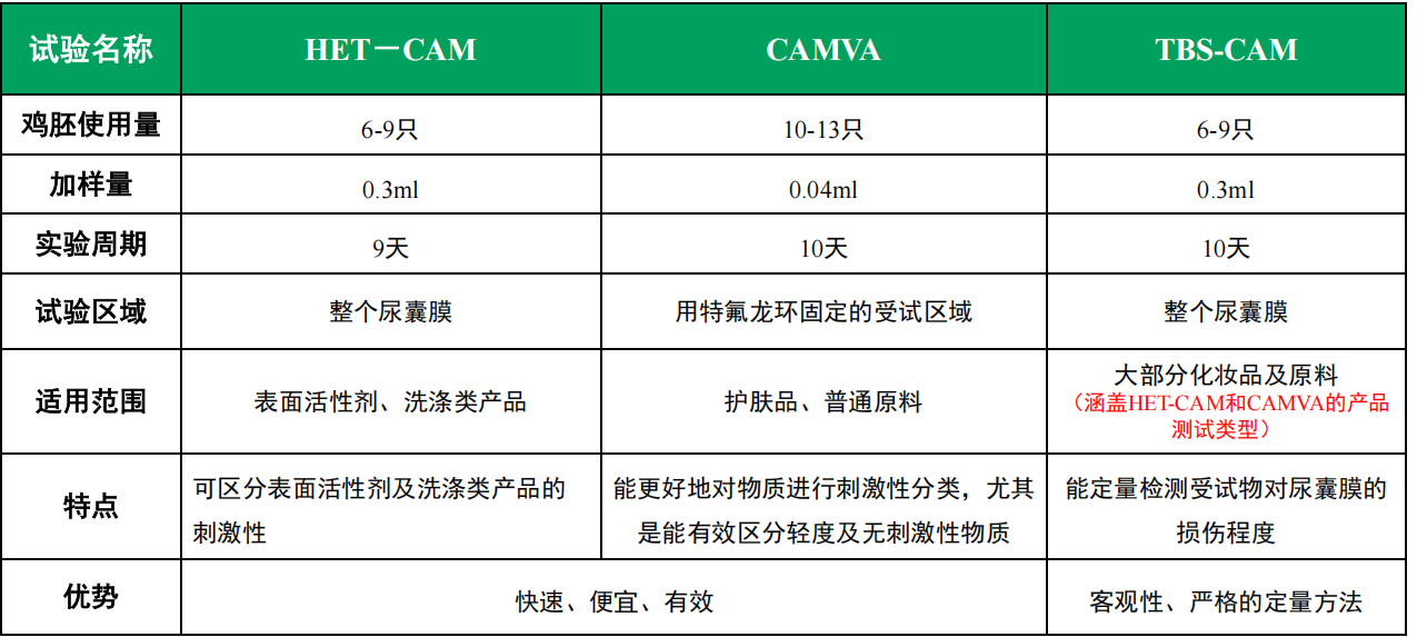 作為一種動物實驗替代方法,雞胚模型能夠客觀評估產(chǎn)品刺激性,為產(chǎn)品研發(fā)提供更為精準的指導。雞胚模型檢測體系,包含雞胚絨毛尿囊膜試驗(HET-CAM)、雞胚絨毛尿囊膜血管試驗(CAMVA)以及雞胚尿囊膜臺盼藍染色試驗(TBS-CAM)三類方法。